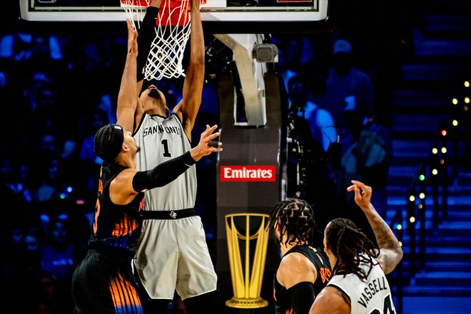 东西部经过多轮鏖战,马刺队和尼克斯站到了决赛舞台上。两队将在拉斯维加斯争夺冠军,或者说每个人53万美元的奖金!赛前,ESPN还是更看好尼克斯的,预测他们的夺冠概率高达六成!不过马刺队不信这些,因为当初半决赛的时候,马刺队面对雷霆队,同样被外界视为劣势一方,但结果是在文班亚马复出的情况下,马刺队从雷霆手中抢走了这个总决赛门票,还顺带着终结了对手的16连胜。